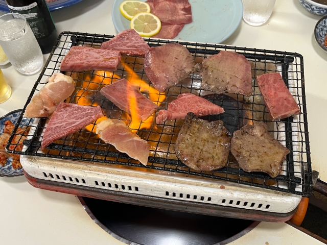街中では、自宅前やマンションの駐車場、河川敷などで炭火を囲む光景があちこちで見られ、町全体が香ばしい煙に包まれるほどです。